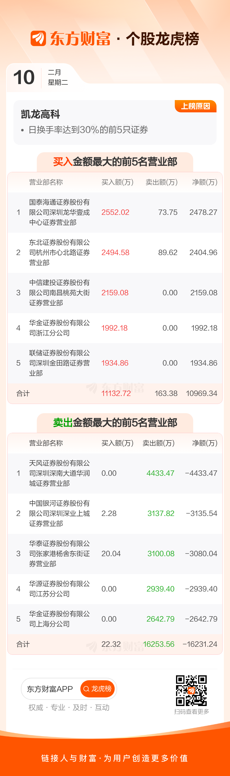凯龙高科(300912)龙虎榜数据(02-10)