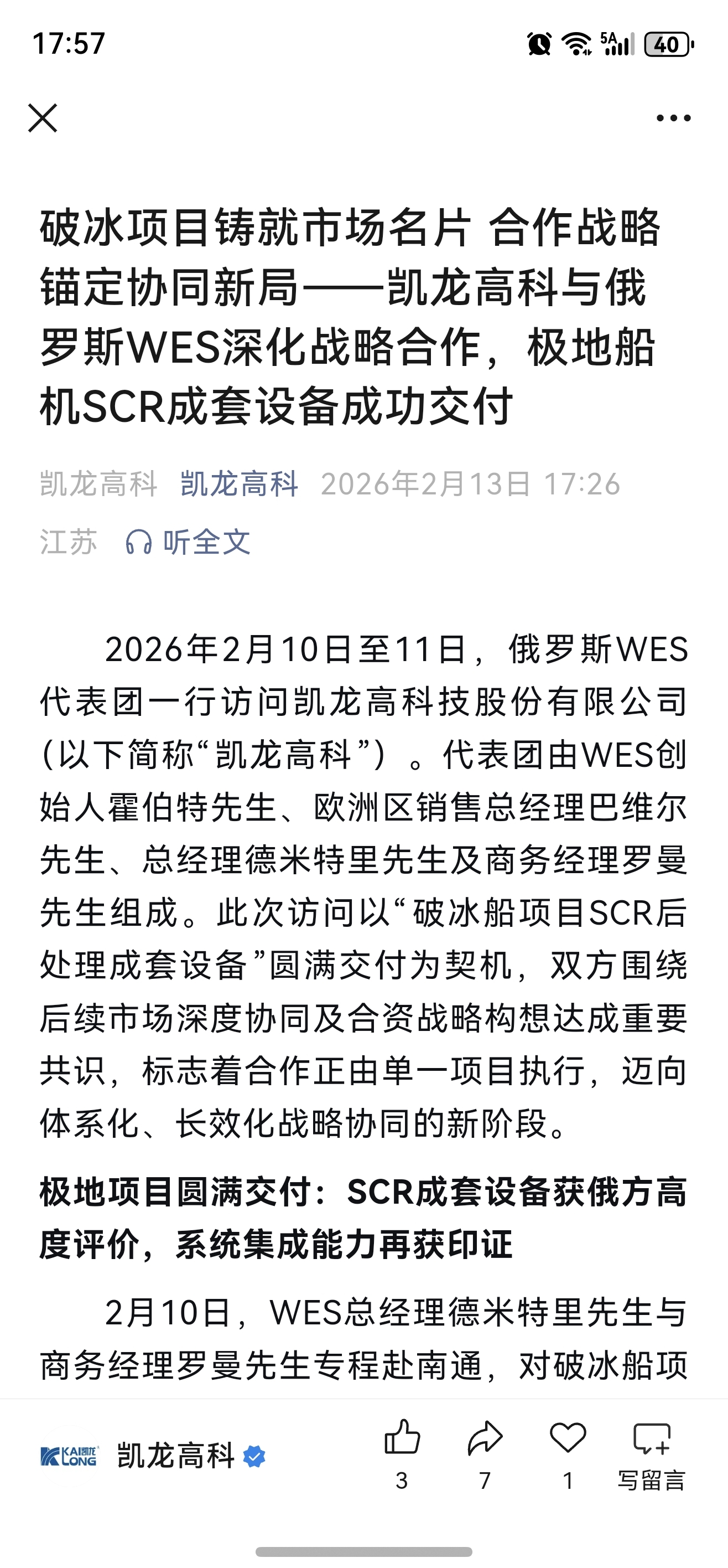 $凯龙高科(SZ300912)$