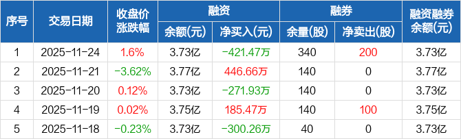 兆龙互连:融资净偿还421.47万元,融资余额3.73亿元(11-24)