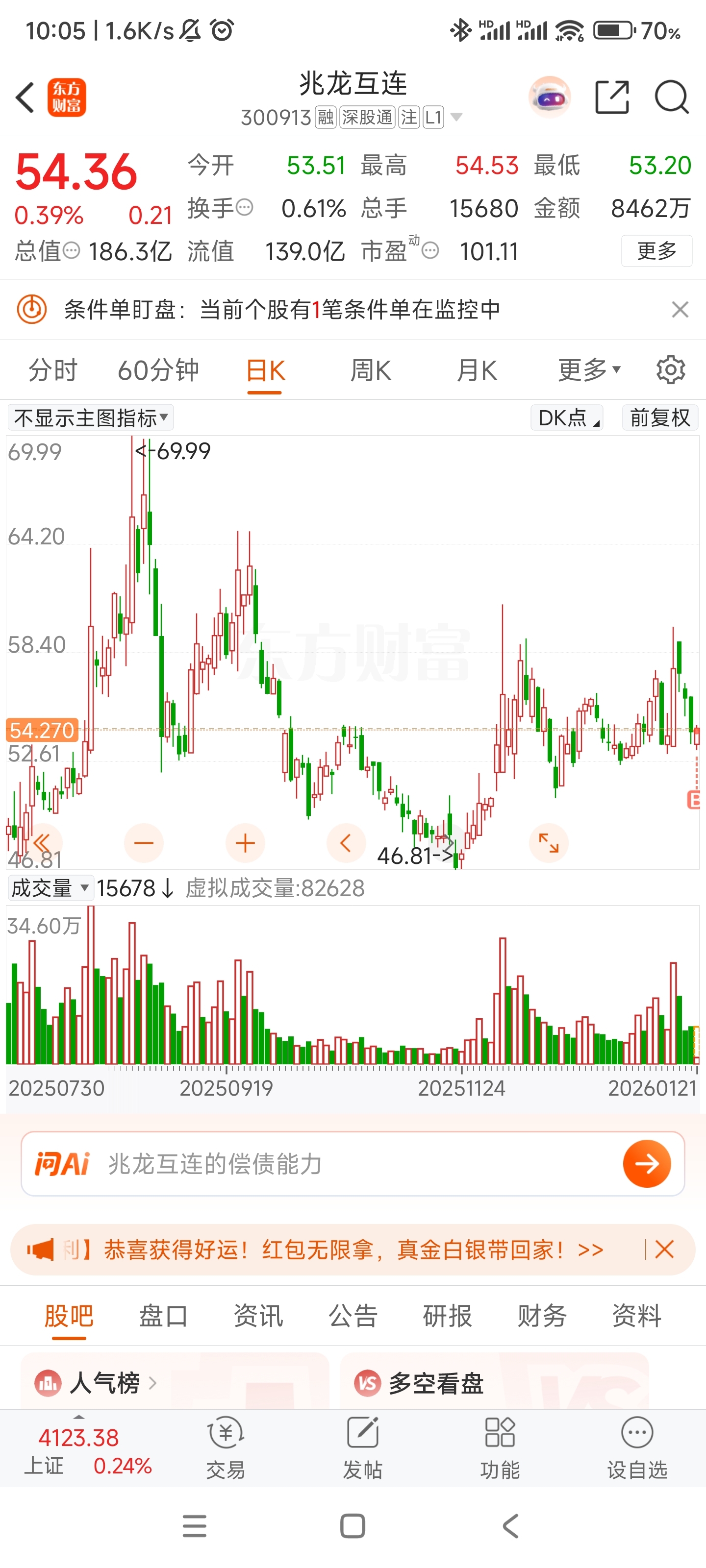 $兆龙互连(SZ300913)$ 我也来凑合热闹兄弟们