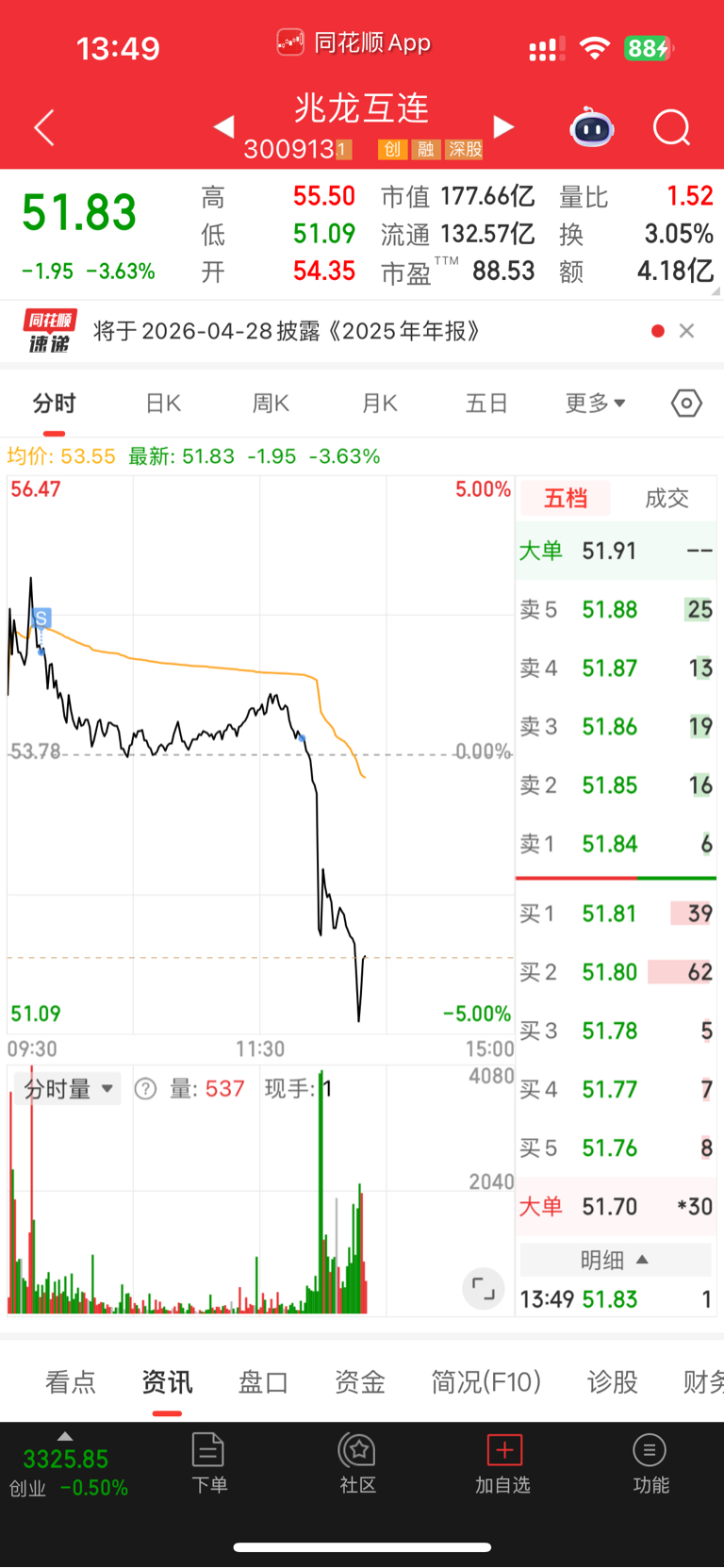 $兆龙互连(SZ300913)$ 这玩意跟跌不跟涨,看到沃尔核材跳水,赶紧出掉了手里最后一点仓位
