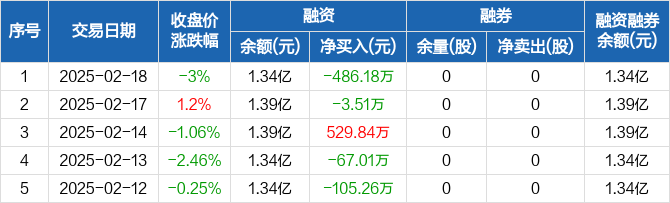 朗特智能:融资净偿还486.18万元,融资余额1.34亿元(02-18)