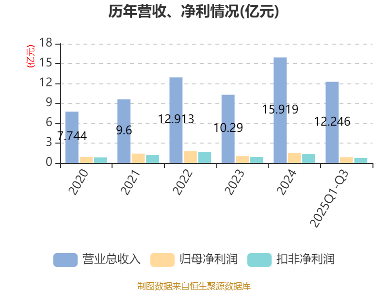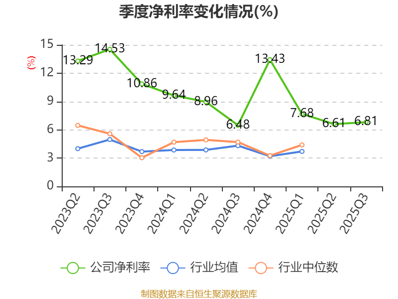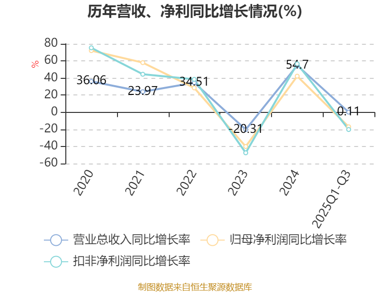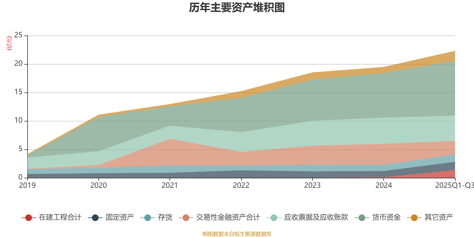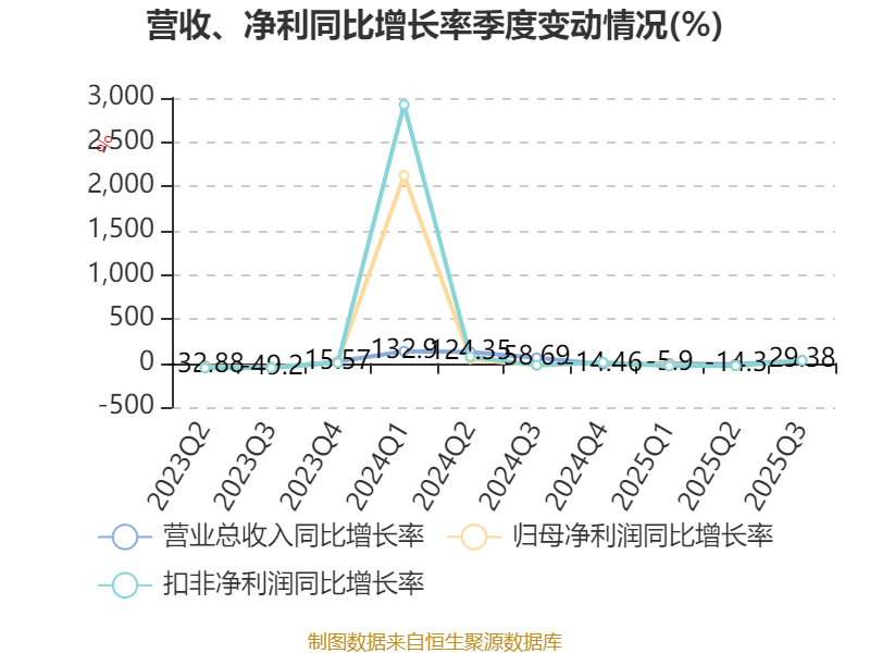 资产重大变化方面,截至2025年三季度末,公司交易性金融资产合计较上年末减少35.21%,占公司总资产比重下降8.27个百分点;在建工程合计较上年末增加1343.88%,占公司总资产比重上升5.59个百分点;应收票据及应收账款较上年末减少3.24%,占公司总资产比重下降3.66个百分点;货币资金较上年末增加22.74%,占公司总资产比重上升2.89个百分点。