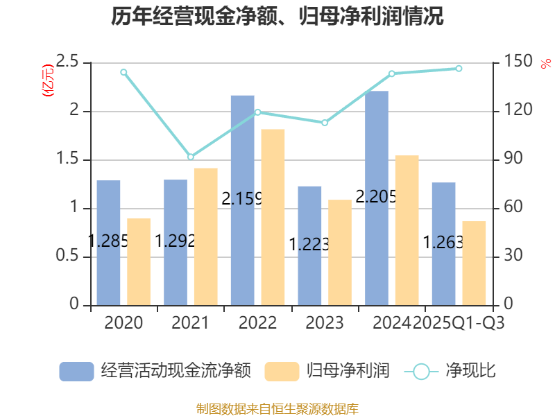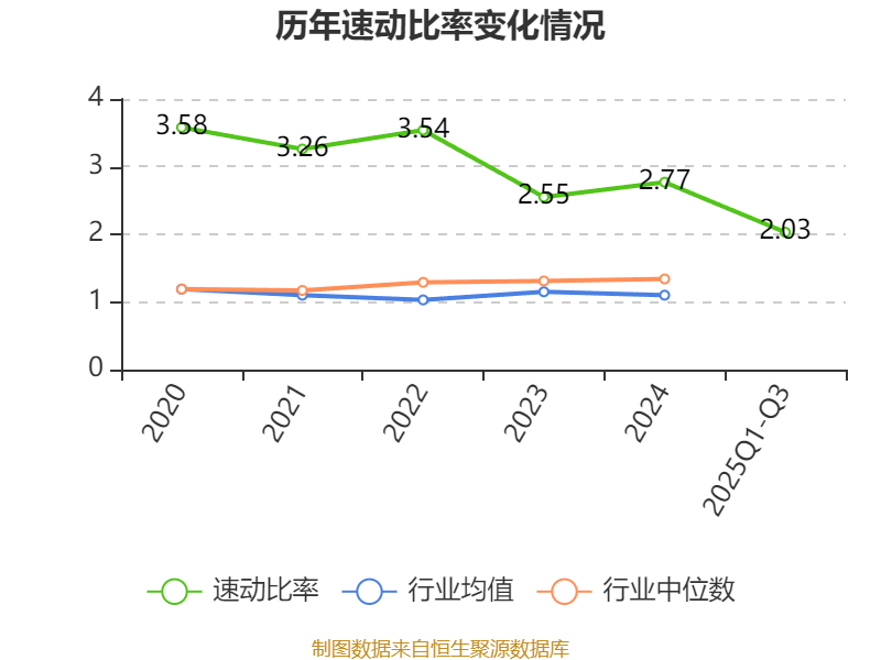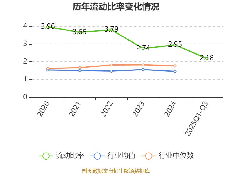 2025年前三季度,公司流动比率为2.18,速动比率为2.03。
