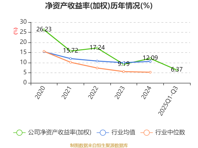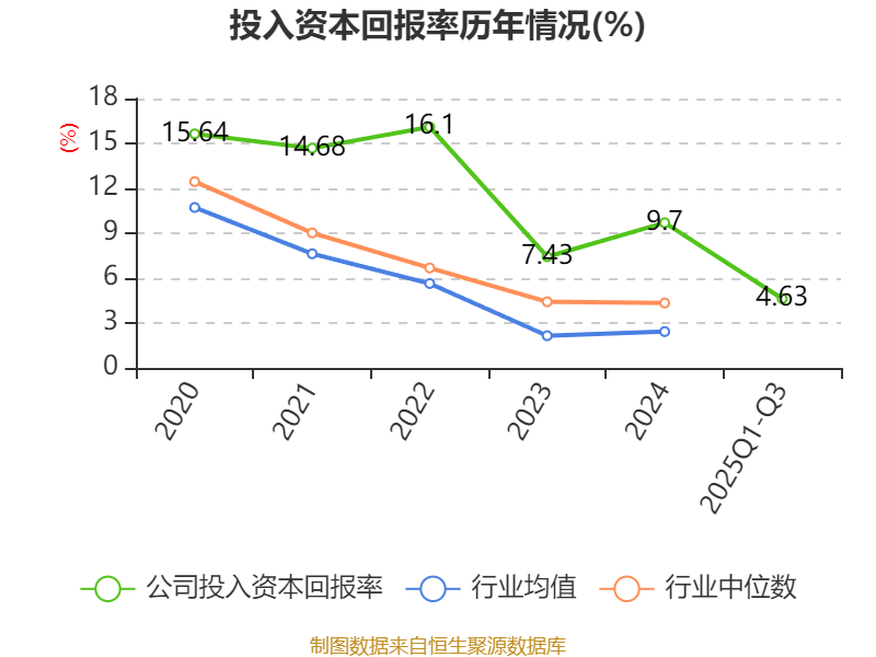 盈利能力方面, 2025年前三季度公司加权平均净资产收益率为6.37%,同比下降1.92个百分点。公司2025年前三季度投入资本回报率为4.63%,较上年同期下降2.21个百分点。