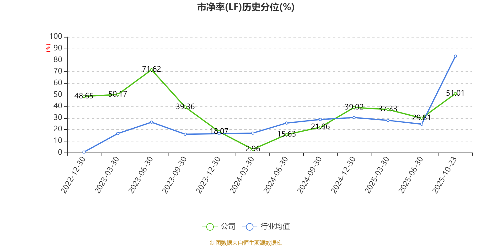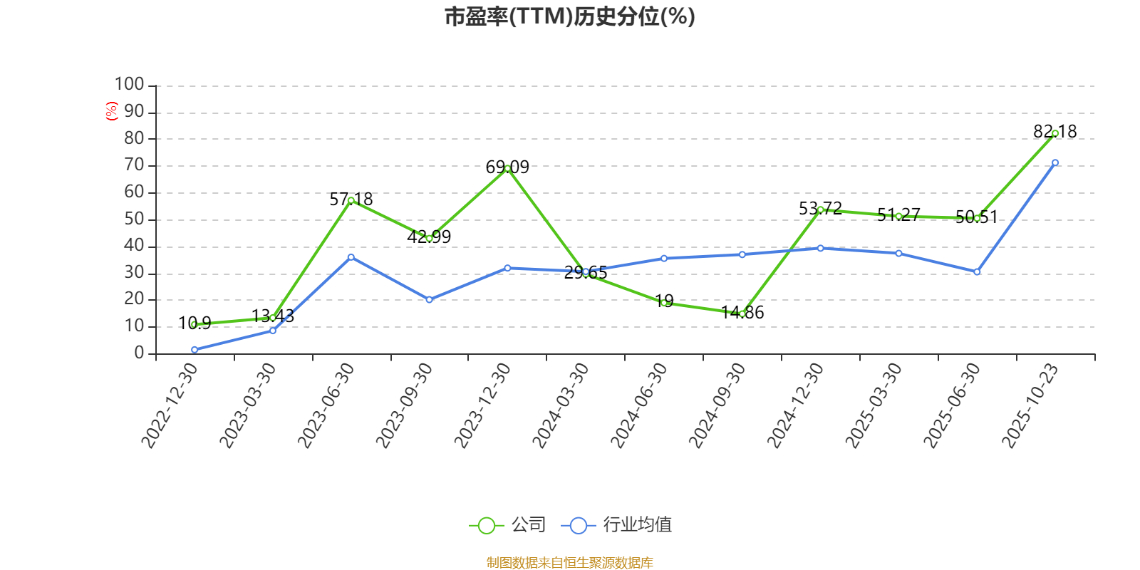市盈率、市净率为负时,不显示当期分位数,会导致折线图中断。