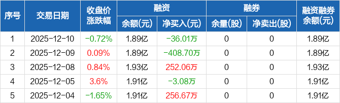 朗特智能:融资净偿还36.01万元,融资余额1.89亿元(12-10)