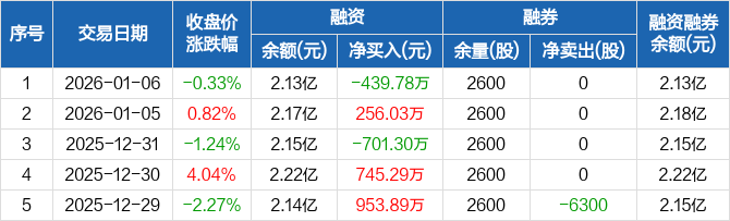 朗特智能:融资净偿还439.78万元,融资余额2.13亿元(01-06)