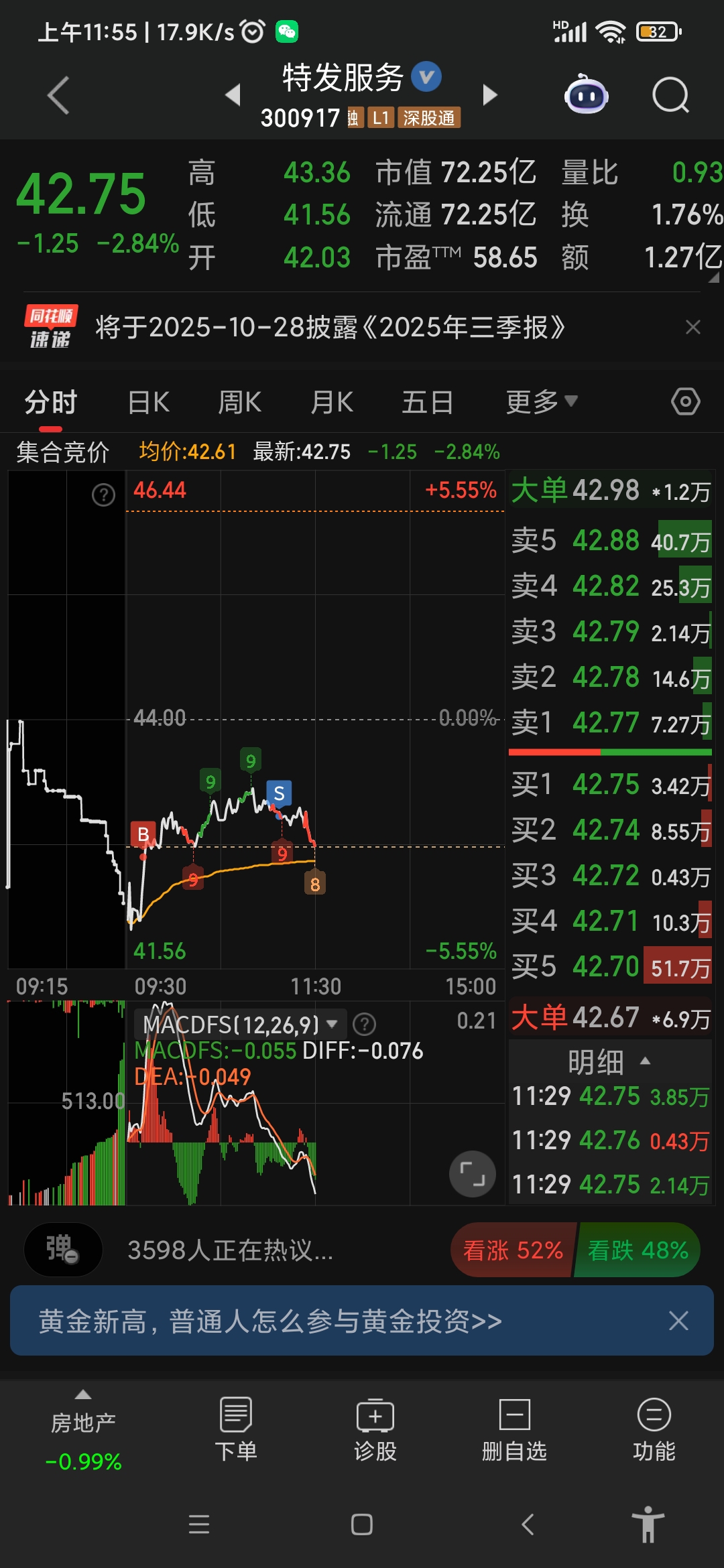 $特发服务(SZ300917)$ 补仓又出来了,不可能亏着清仓的,业绩没问题,只要不爆雷迟早涨回来