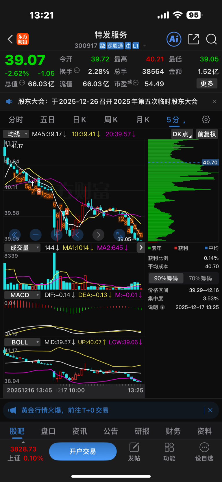 $特发服务(SZ300917)$ 依旧出货,弱势向下,毫无抵抗