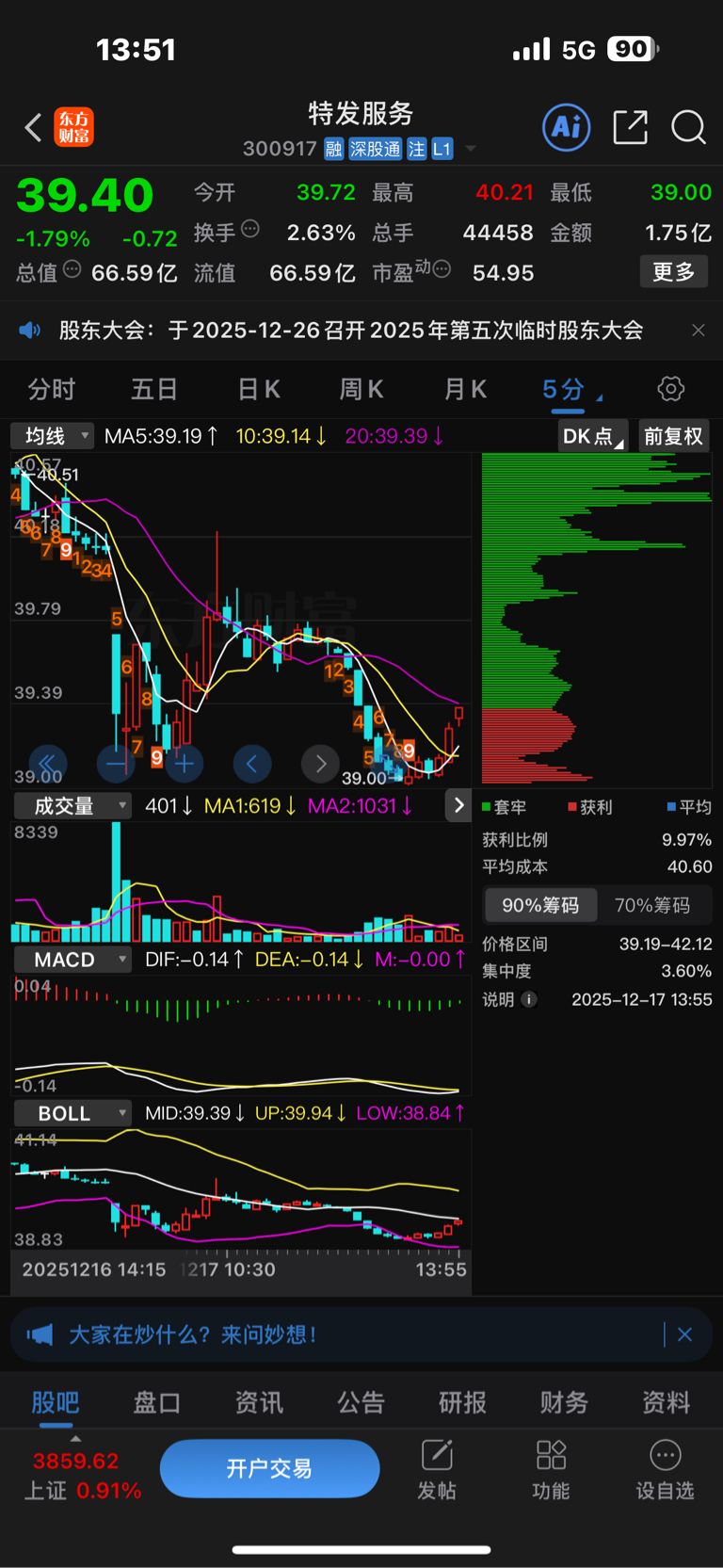 $特发服务(SZ300917)$ 不要追,无量反弹,很弱!