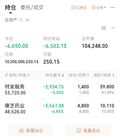 我的账户突然多了100亿,明天100亿梭哈,康芝药业,特发服务,我也来体验一把当