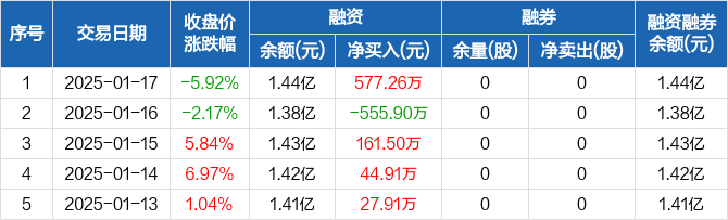 南山智尚:融资净买入577.26万元,融资余额1.44亿元(01-17)