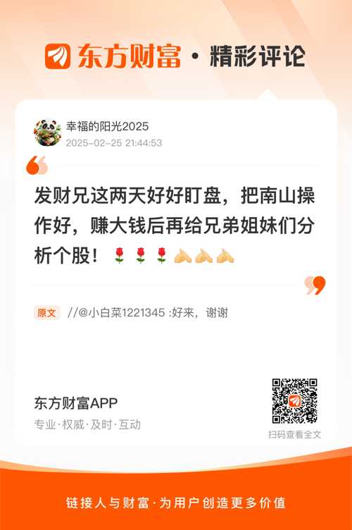温馨提示: 1.根据《证券法》规定,禁止编造、传播虚假信息或者误导性信息,扰乱证券市场;2.用户在本社区发表的所有资料、言论等仅代表个人观点,与本网站立场无关,不对您构成任何投资建议。用户应基于自己的独立判断,自行决定证券投资并承担相应风险。《东方财富社区管理规定》