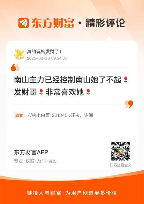 温馨提示: 1.根据《证券法》规定,禁止编造、传播虚假信息或者误导性信息,扰乱证券市场;2.用户在本社区发表的所有资料、言论等仅代表个人观点,与本网站立场无关,不对您构成任何投资建议。用户应基于自己的独立判断,自行决定证券投资并承担相应风险。《东方财富社区管理规定》