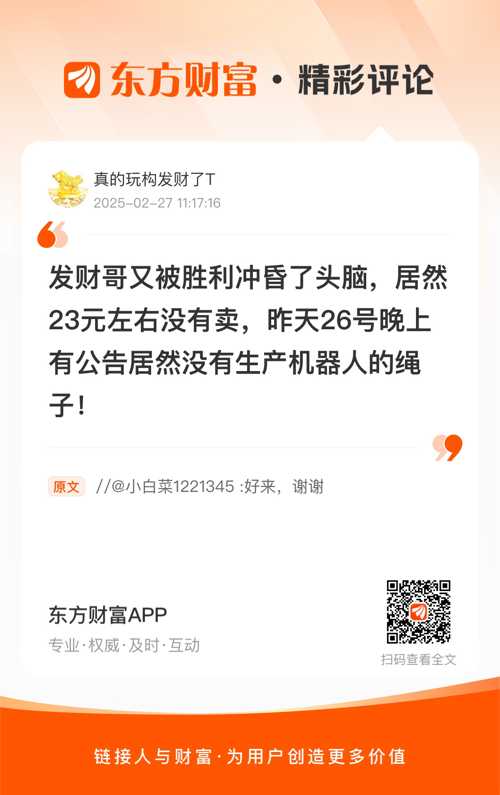 //@真的玩构发财了T : 发财哥又被胜利冲昏了头脑,居然23元左右没有卖,昨天26号晚上有公告居然没有生产机器人的绳子!