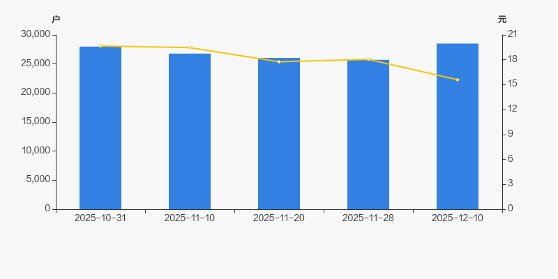 2025年10月31日至今,公司股东户数有所增长,区间涨幅为1.86%。2025年10月31日至2025年12月10日区间股价下降20.65%。