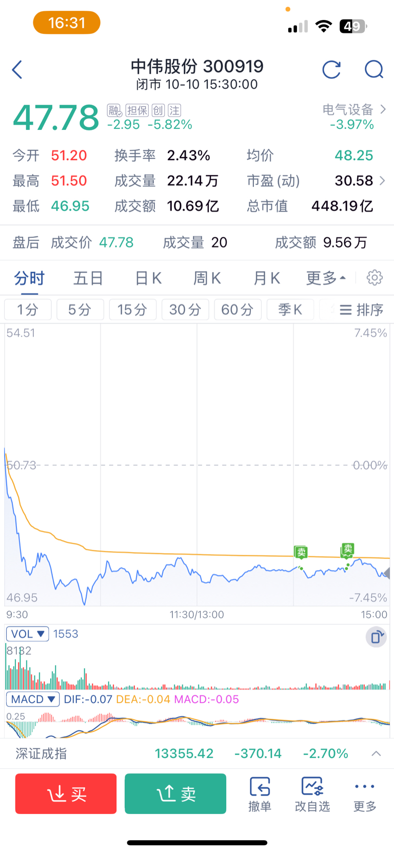 $中伟股份(SZ300919)$ 卖在最低,恶心死了,一早不知道跑