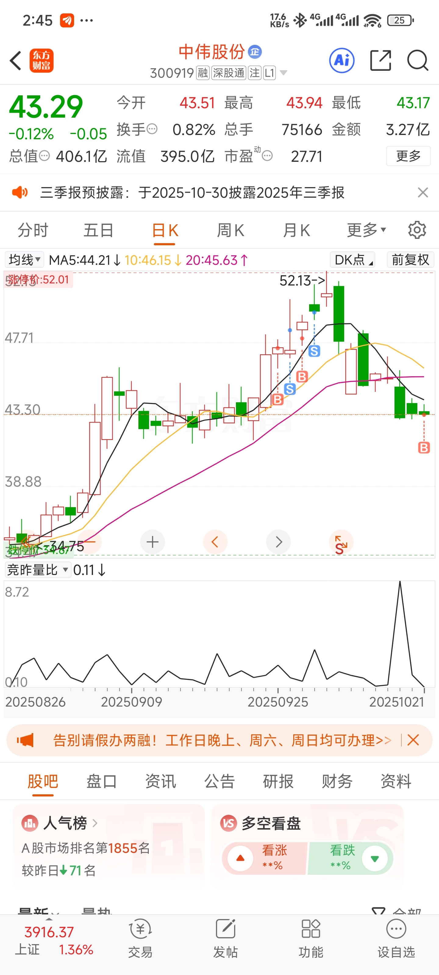 $中伟股份(SZ300919)$ 明天开盘涨了我就跑