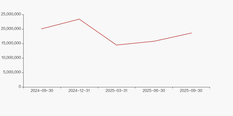 截至2025年9月30日,公司最新总股本为9.38亿股,其中流通股本为9.13亿股。户均持有流通股数量由上期的2.53万股下降至1.95万股,户均流通市值97.35万元。