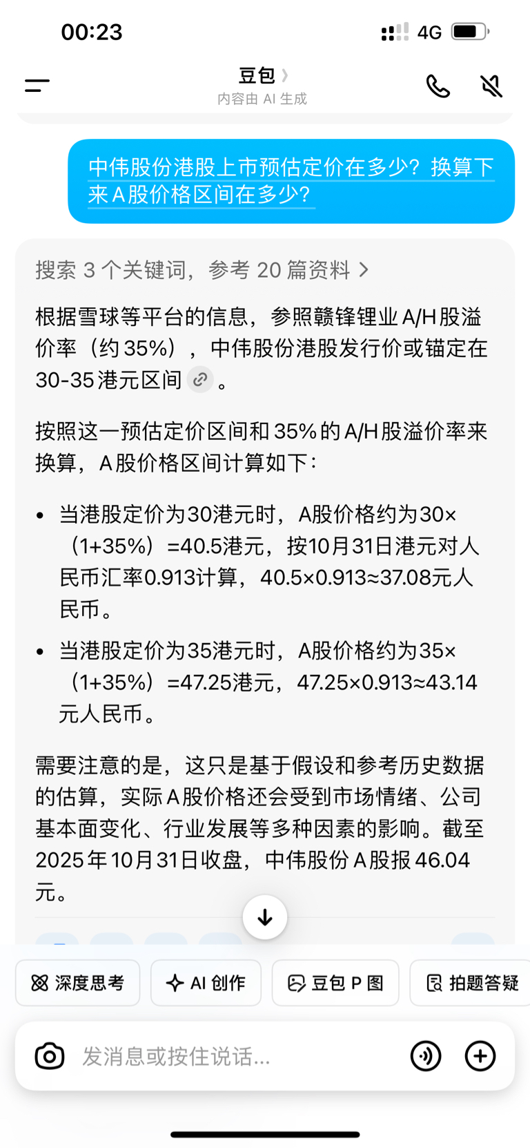 如果按照这个定价30-35港元区间,中伟A股预估在37-43之间,不知道下周会不