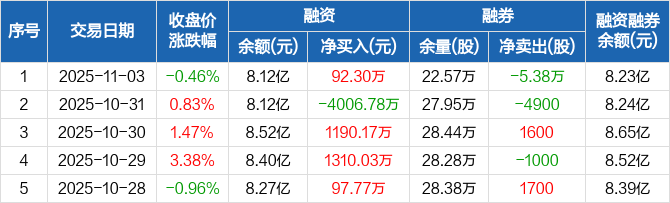 中伟股份:融资净买入92.3万元,融资余额8.12亿元(11-03)