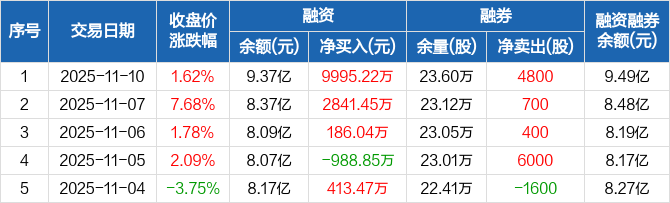 中伟股份:融资余额9.37亿元,创历史新高(11-10)