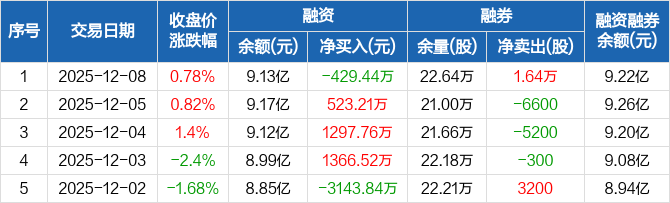 中伟股份:融资净偿还429.44万元,融资余额9.13亿元(12-08)