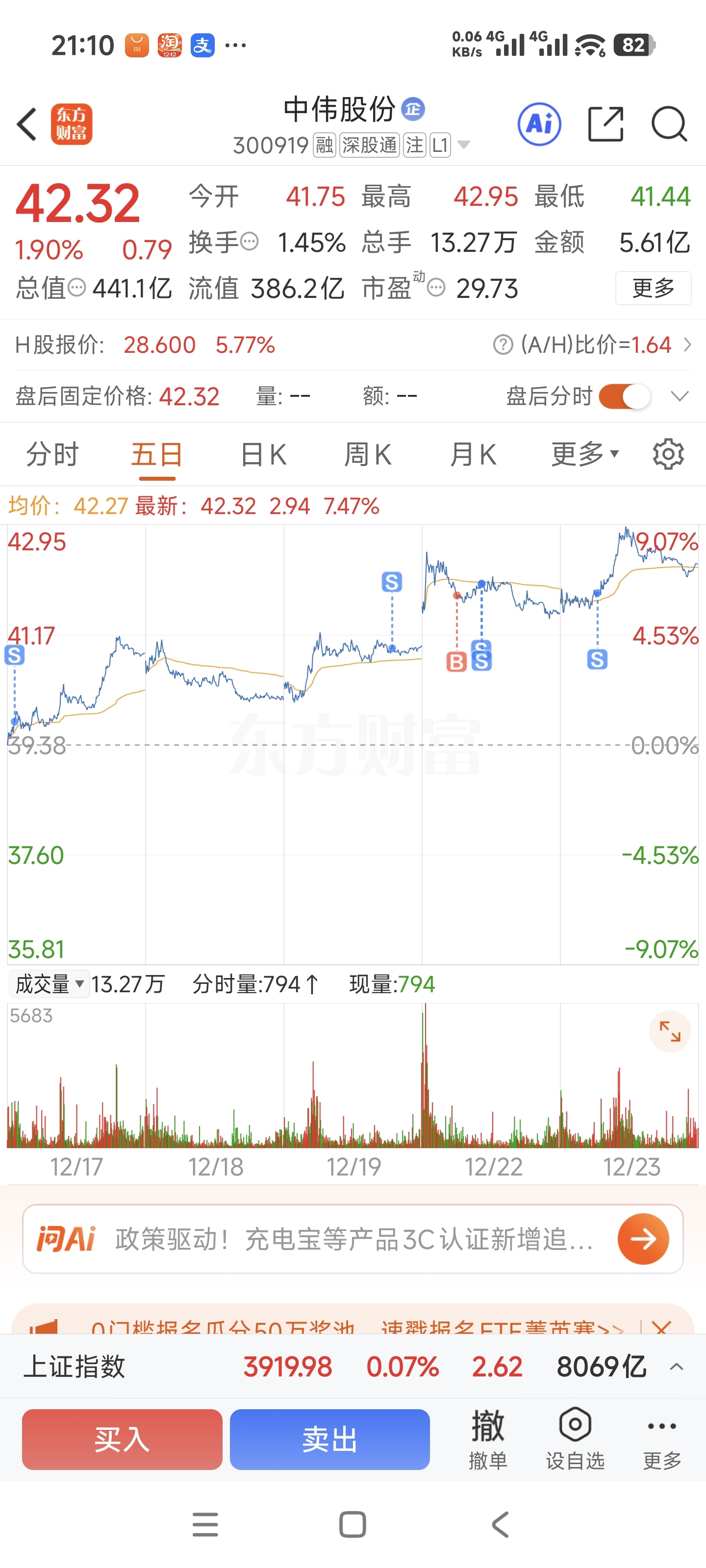 $中伟股份(SZ300919)$ 一边卖一边涨