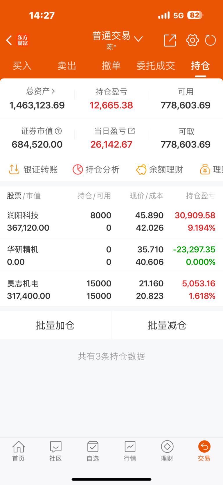 一起见证陈姐实盘操作记录第41天今作:清:华研精机续持:昊志机电买入:润阳科