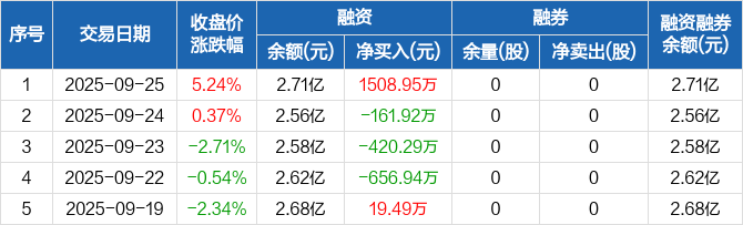 润阳科技:融资净买入1508.95万元,融资余额2.71亿元(09-25)