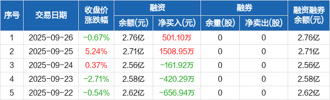 润阳科技:融资净买入501.1万元,融资余额2.76亿元(09-26)