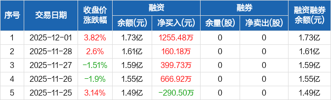 南凌科技:连续4日融资净买入累计2482.32万元(12-01)