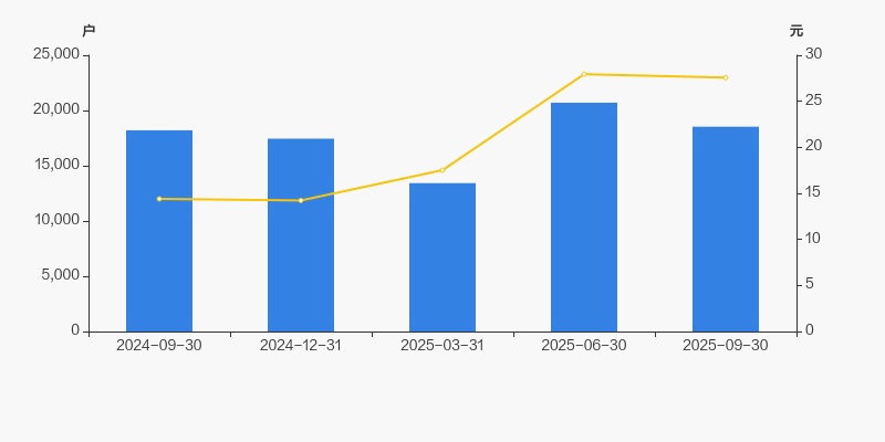 2024年9月30日至今,公司股东户数有所增长,区间涨幅为1.77%。2024年9月30日至2025年9月30日区间股价上涨91.43%。