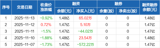 天秦装备:融资净买入65.02万元,融资余额1.48亿元(11-13)