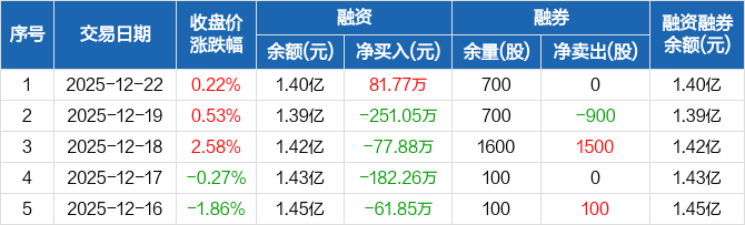 天秦装备:融资净买入81.77万元,融资余额1.4亿元(12-22)