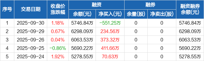 研奥股份:融资净偿还551.25万元,融资余额5746.84万元(09-30)