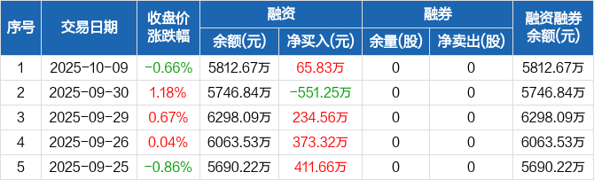 研奥股份:融资净买入65.83万元,融资余额5812.67万元(10-09)