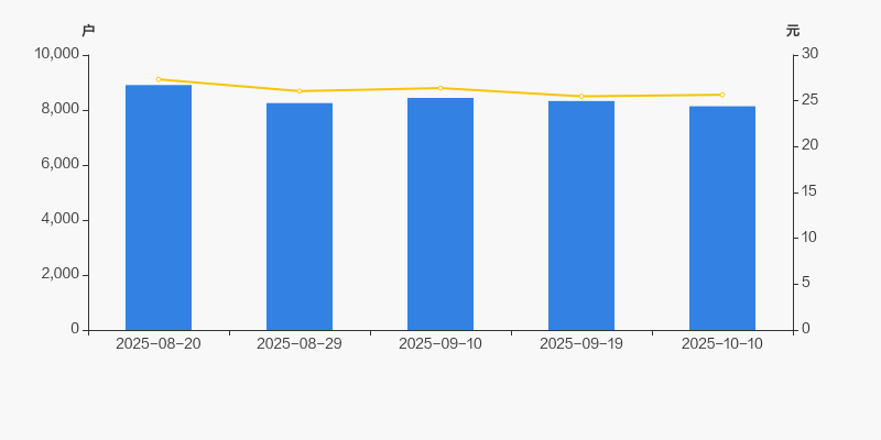 2025年8月20日至今,公司股东户数有所下降,区间跌幅为8.67%。2025年8月20日至2025年10月10日区间股价下降6.14%。