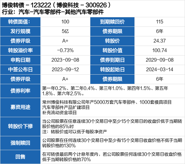 博俊转债申购提示(9-8)