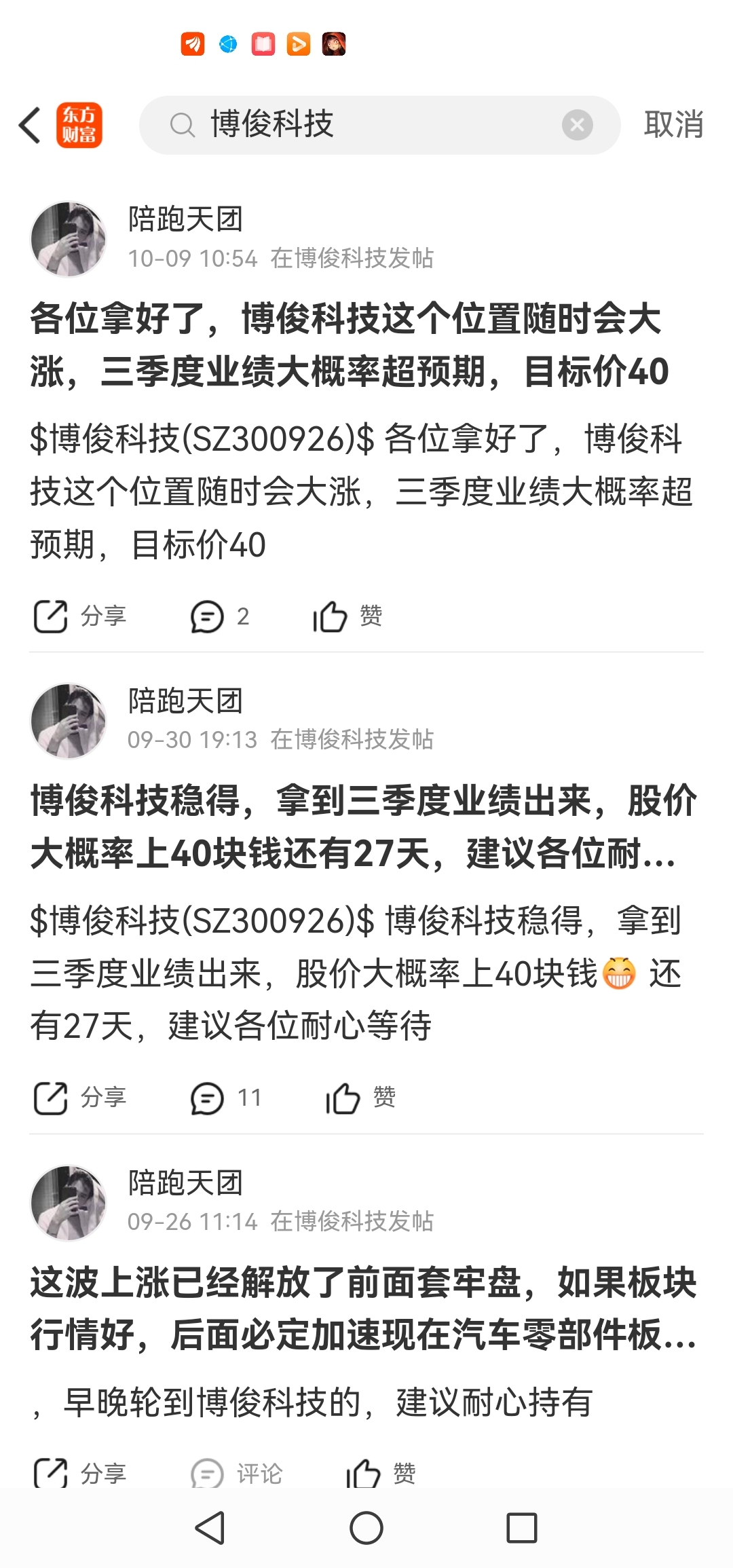 低于40块钱耐心持有即可,三季度业绩大概率是77%左右,接近上限80%,全年都是超预期的好,明年继续30-50%增速,我的理由是博俊科技核心产品竞争力强,可以拿到超预期的订单
