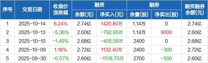 博俊科技:融资净买入1420.8万元,融资余额2.74亿元(10-14)