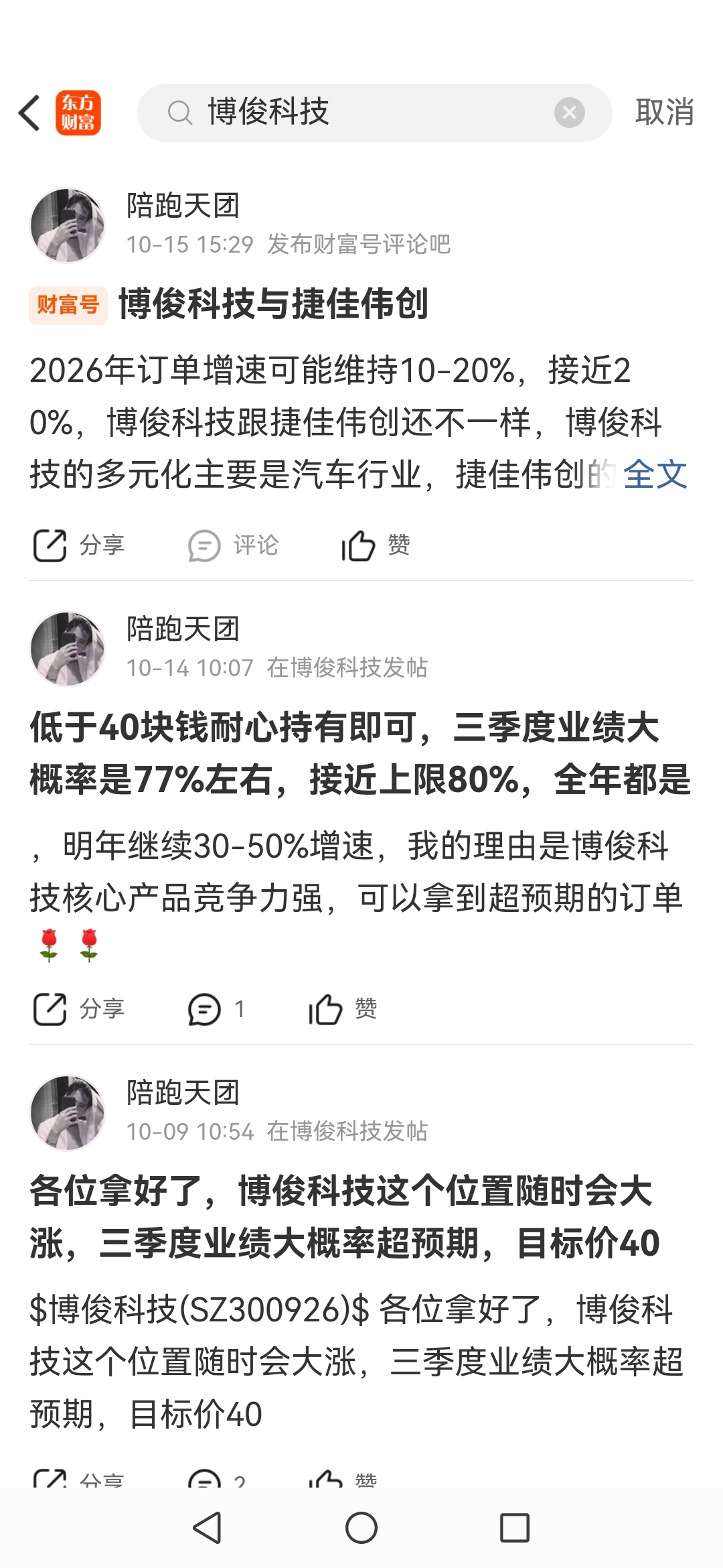 博俊科技业绩低于预期吧,我的预期是77%增速,目前业绩增长有放缓的趋势,不容乐观