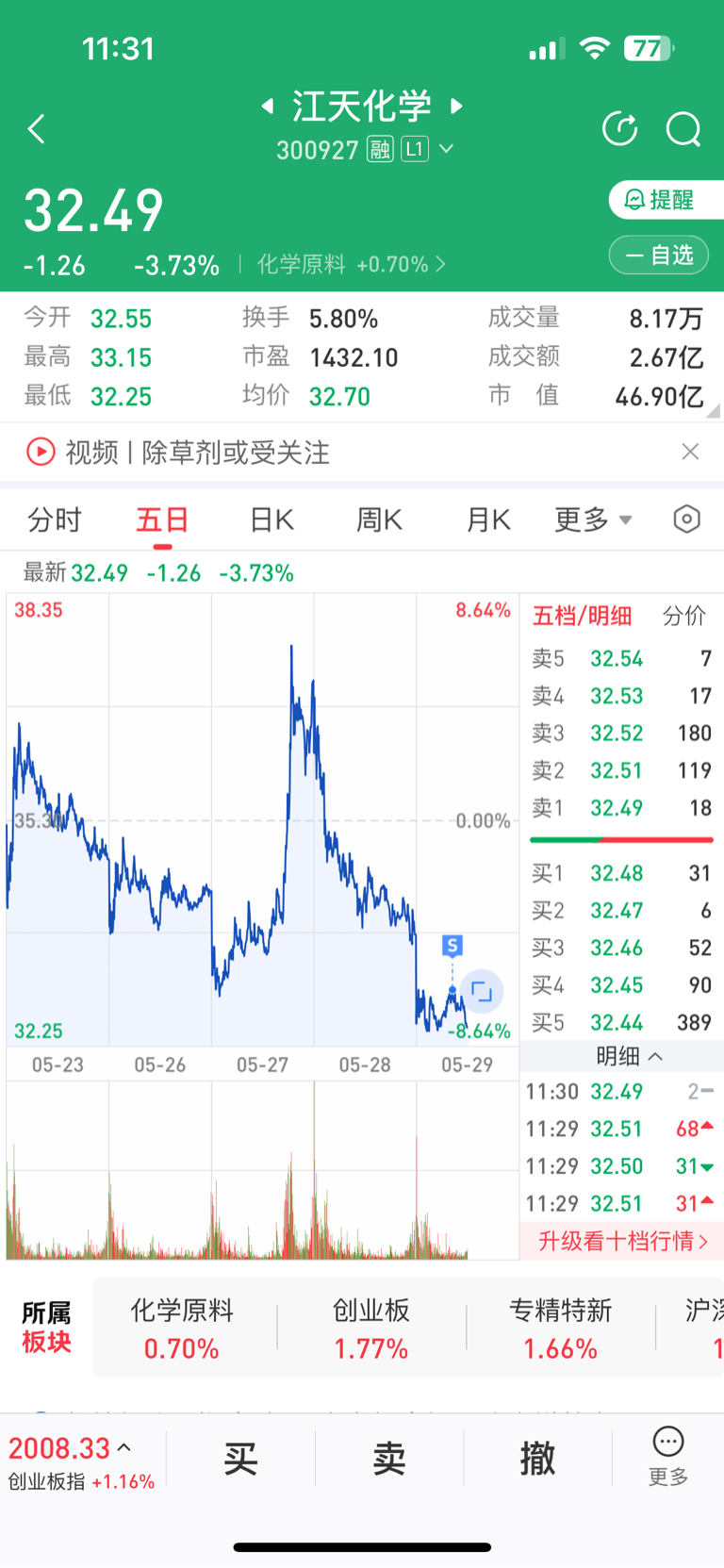 $江天化学(SZ300927)$ 割了割了,大好行情不能绿在这
