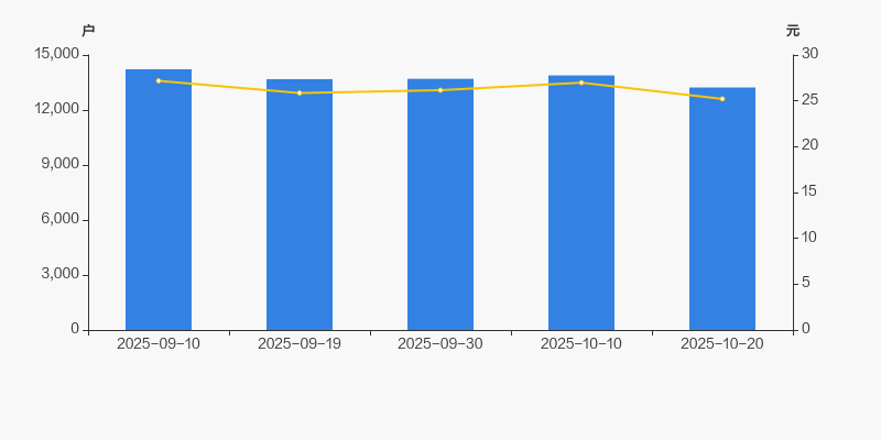 2025年9月10日至今,公司股东户数有所下降,区间跌幅为7.00%。2025年9月10日至2025年10月20日区间股价下降7.25%。