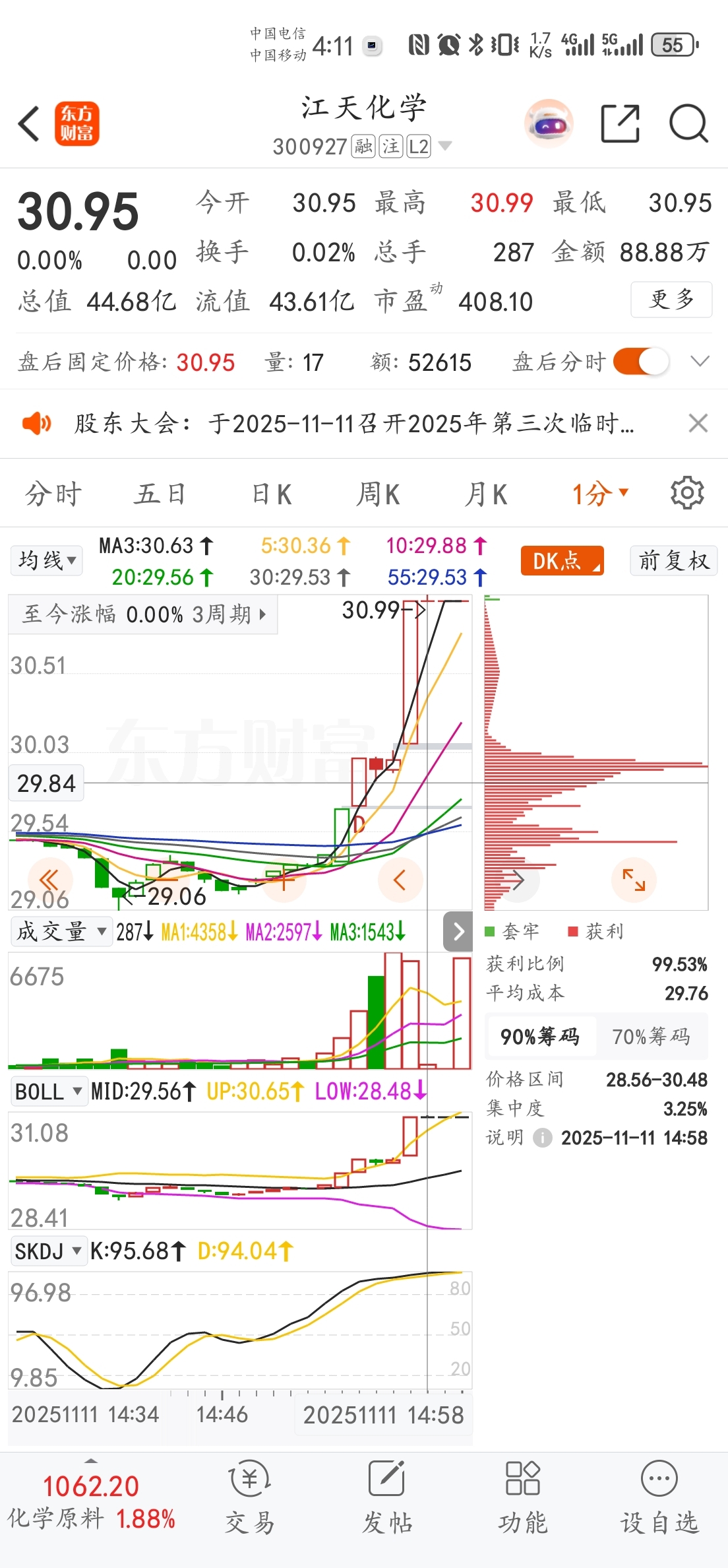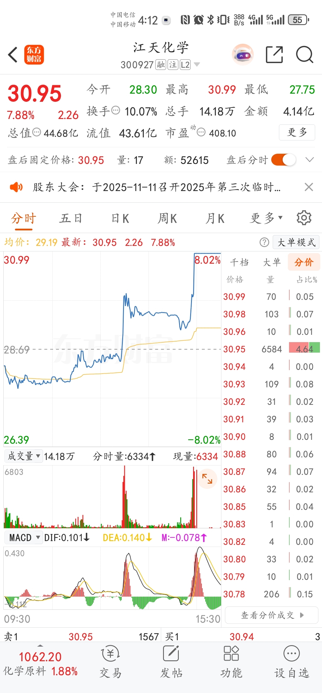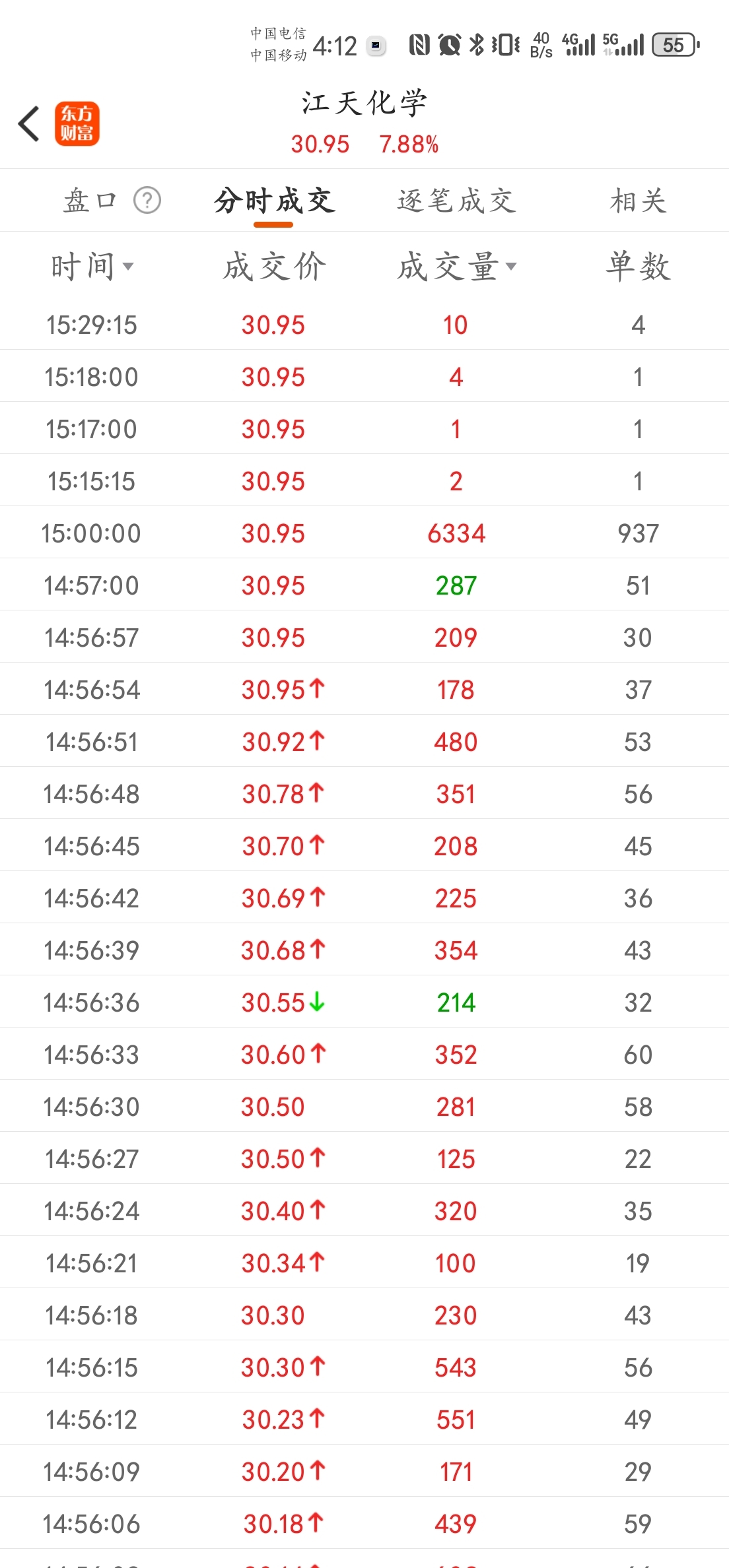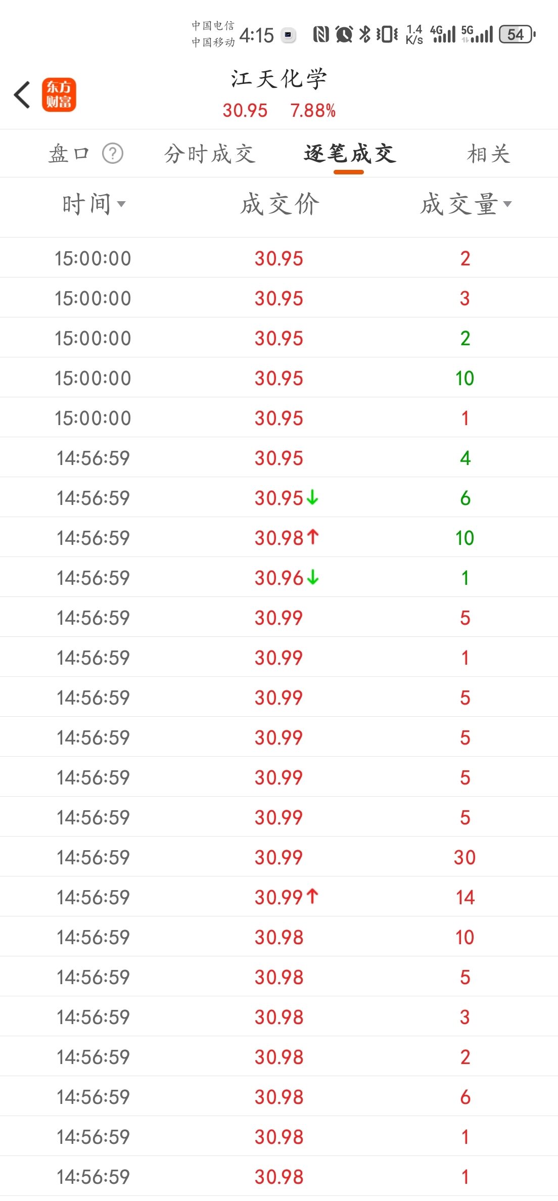 图一。一分钟K线图二。分时分价图图三。分时成交图图四。逐笔成交图这70手30.9