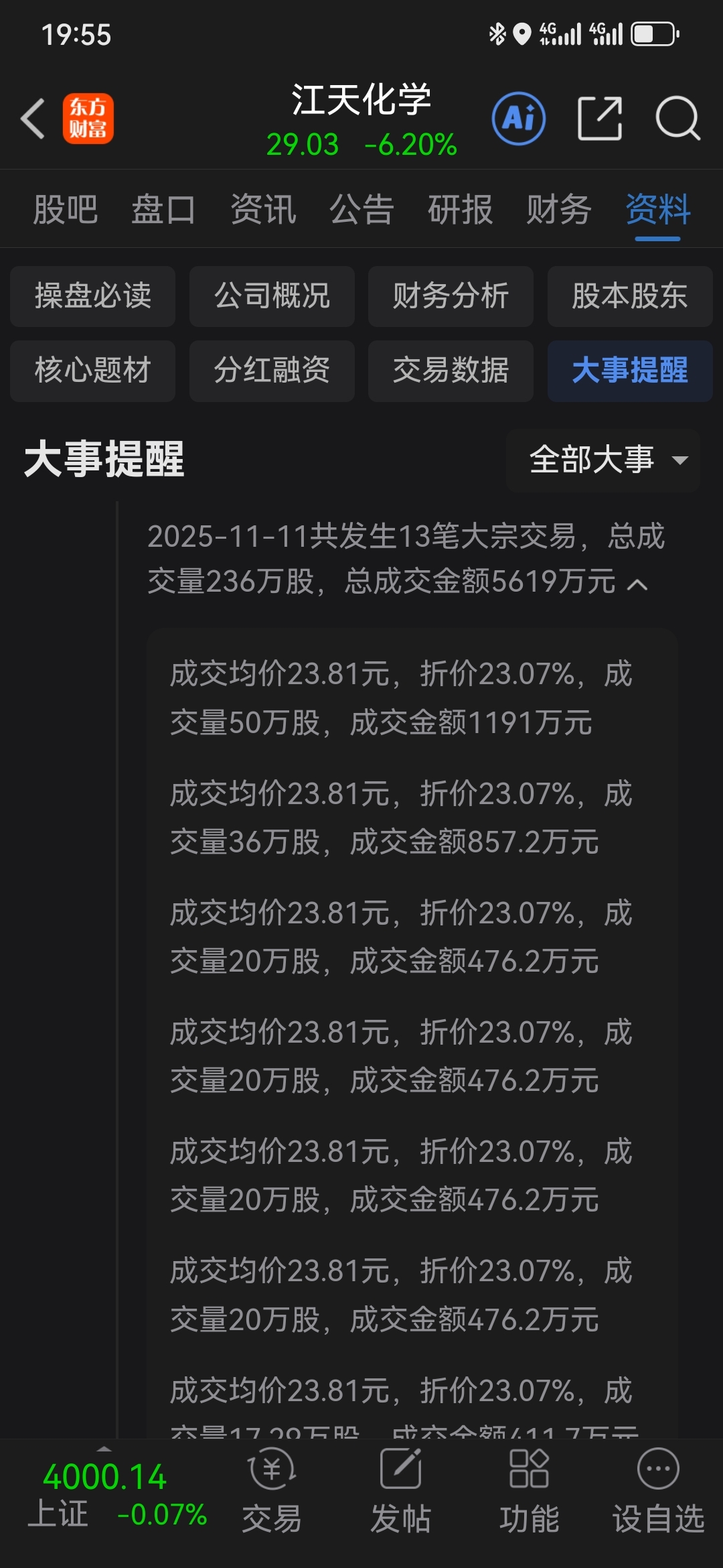 $江天化学(SZ300927)$ 额,大宗交易折价23%,股东有多缺钱呀