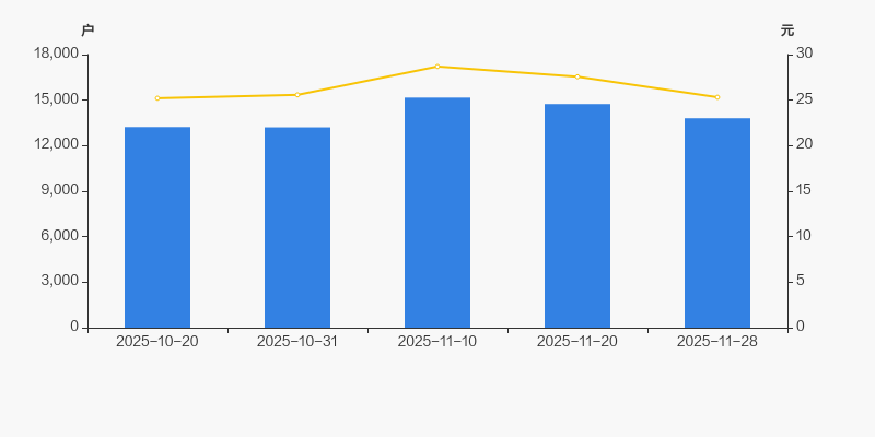 2025年10月20日至今,公司股东户数有所增长,区间涨幅为4.38%。2025年10月20日至2025年11月28日区间股价上涨0.44%。
