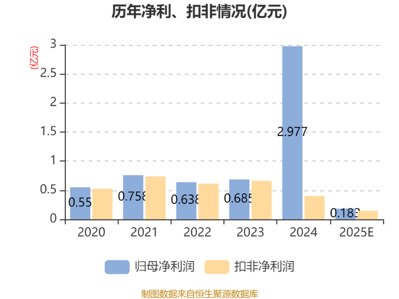 据公告,2024年归属于上市公司股东的净利润显著较高,主要是公司收购三大雅精细化学品(南通)有限公司支付的股权对价低于三大雅净资产公允价值形成的负商誉2.55亿元,依据会计准则确认为营业外收入,对2024年净利润形成较大贡献。本报告期公司净利润不再包含该项一次性收益,因此与上年相比出现较大幅度下降,符合非经常性损益对不同期间利润影响的客观规律。
