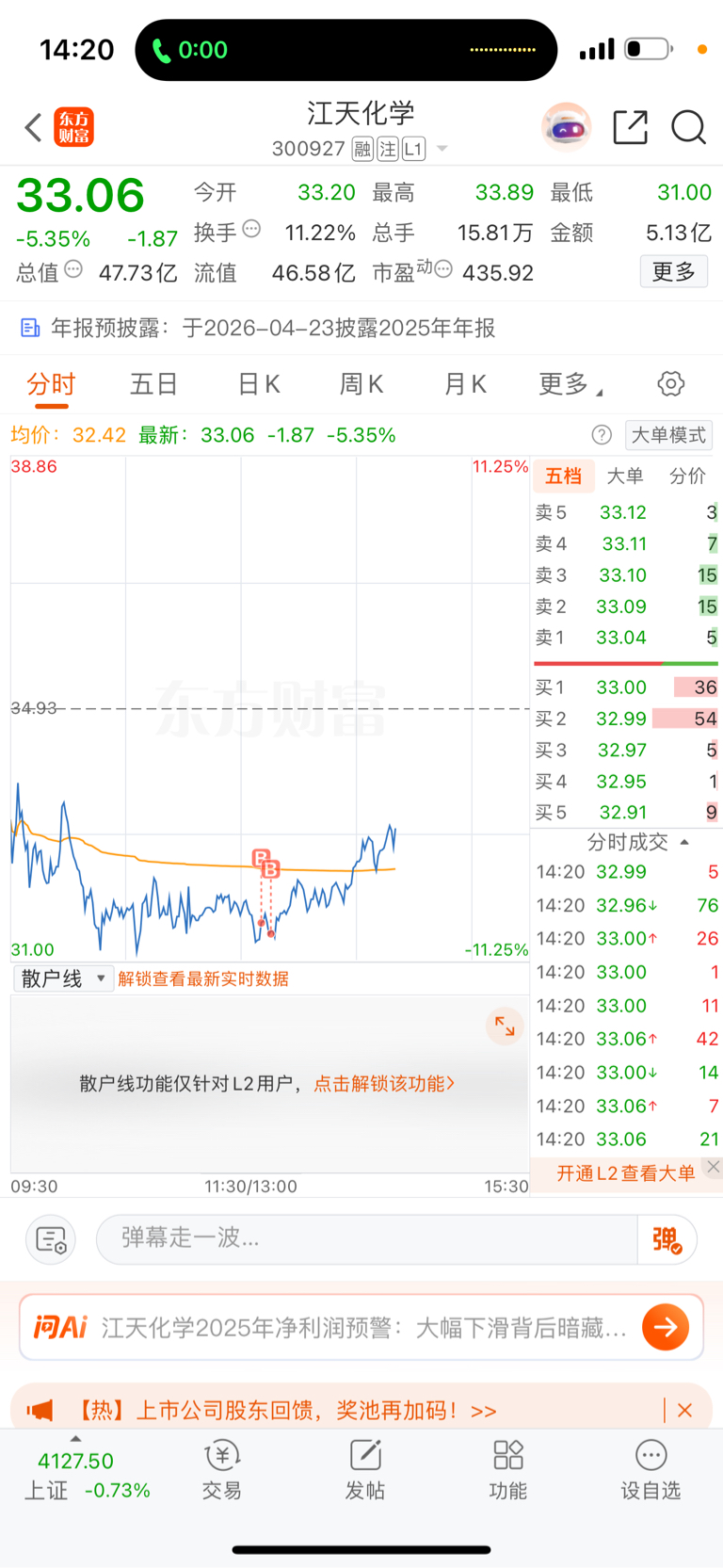 $江天化学(SZ300927)$ 还可以吧